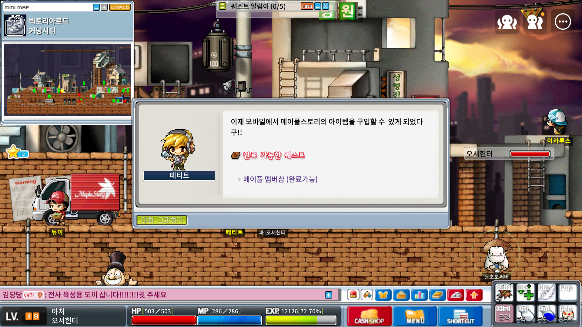 메이플랜드에서는 할 수 없는 메이플 멤버샵을 홍보하는 퀘스트예요~