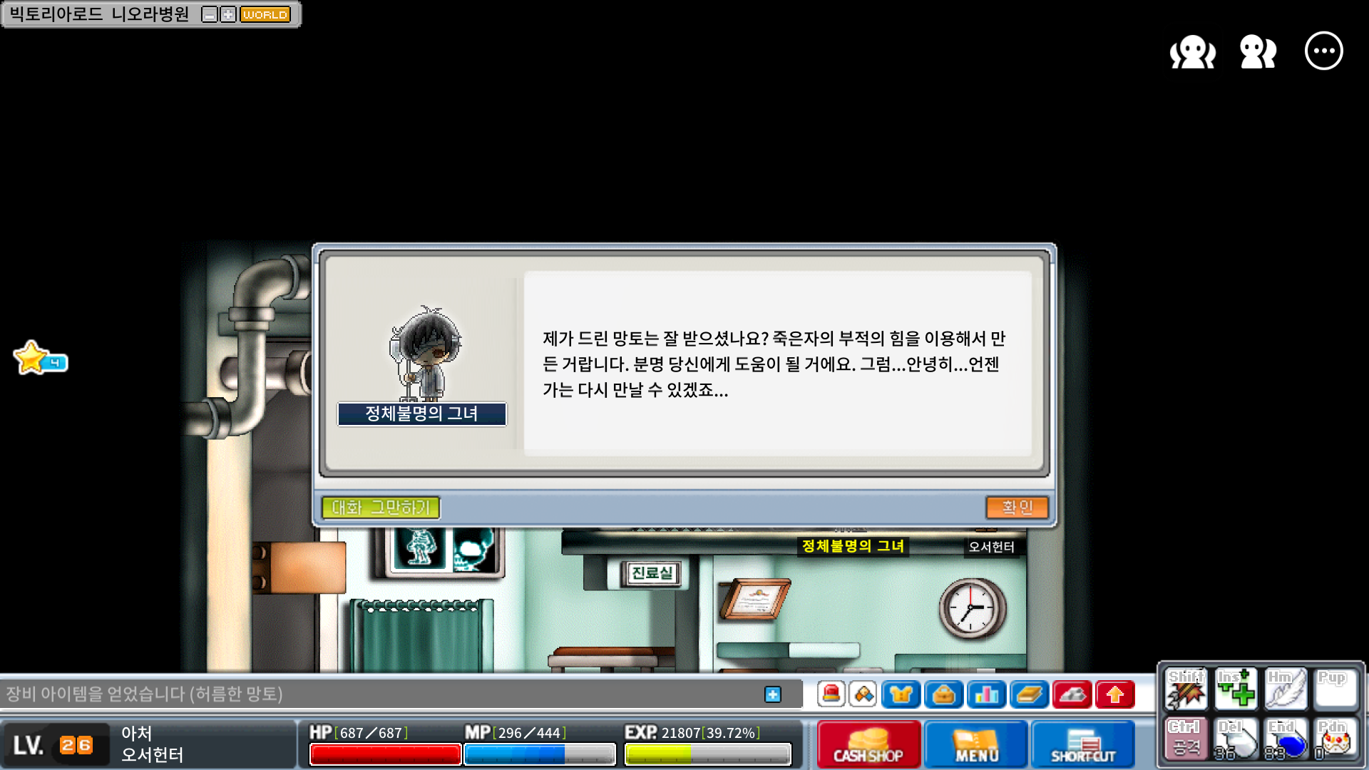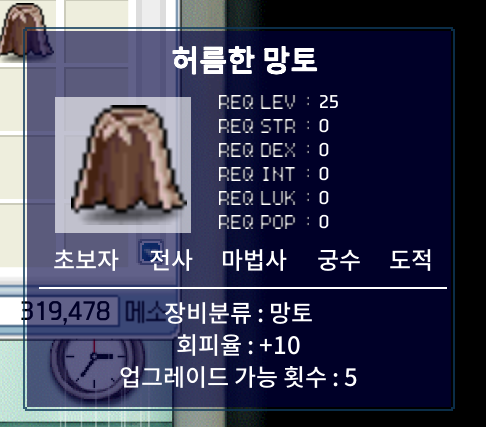 불쌍한 정체불명의 그녀를 도와주고 허름한 망토를 얻었네요.