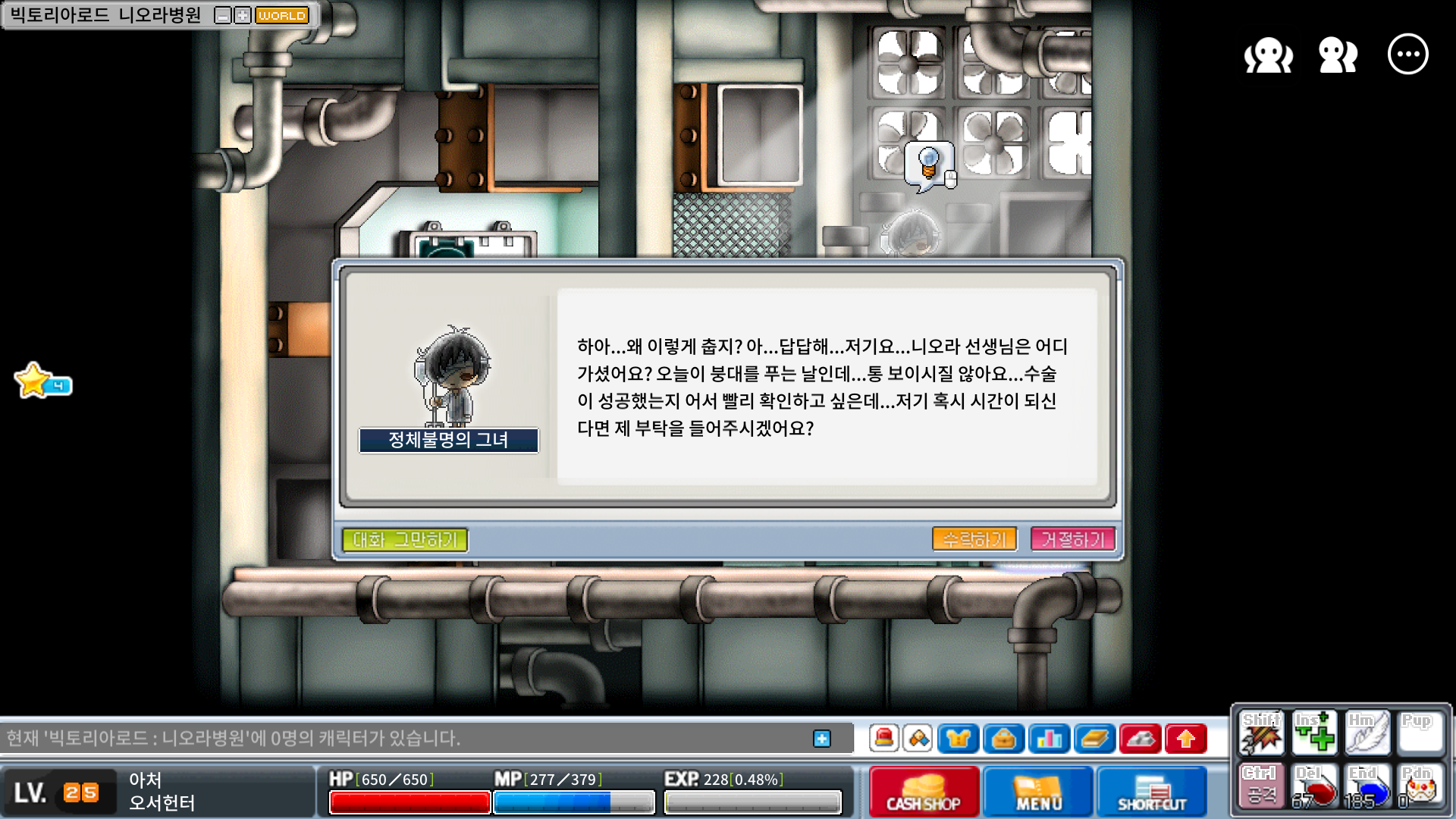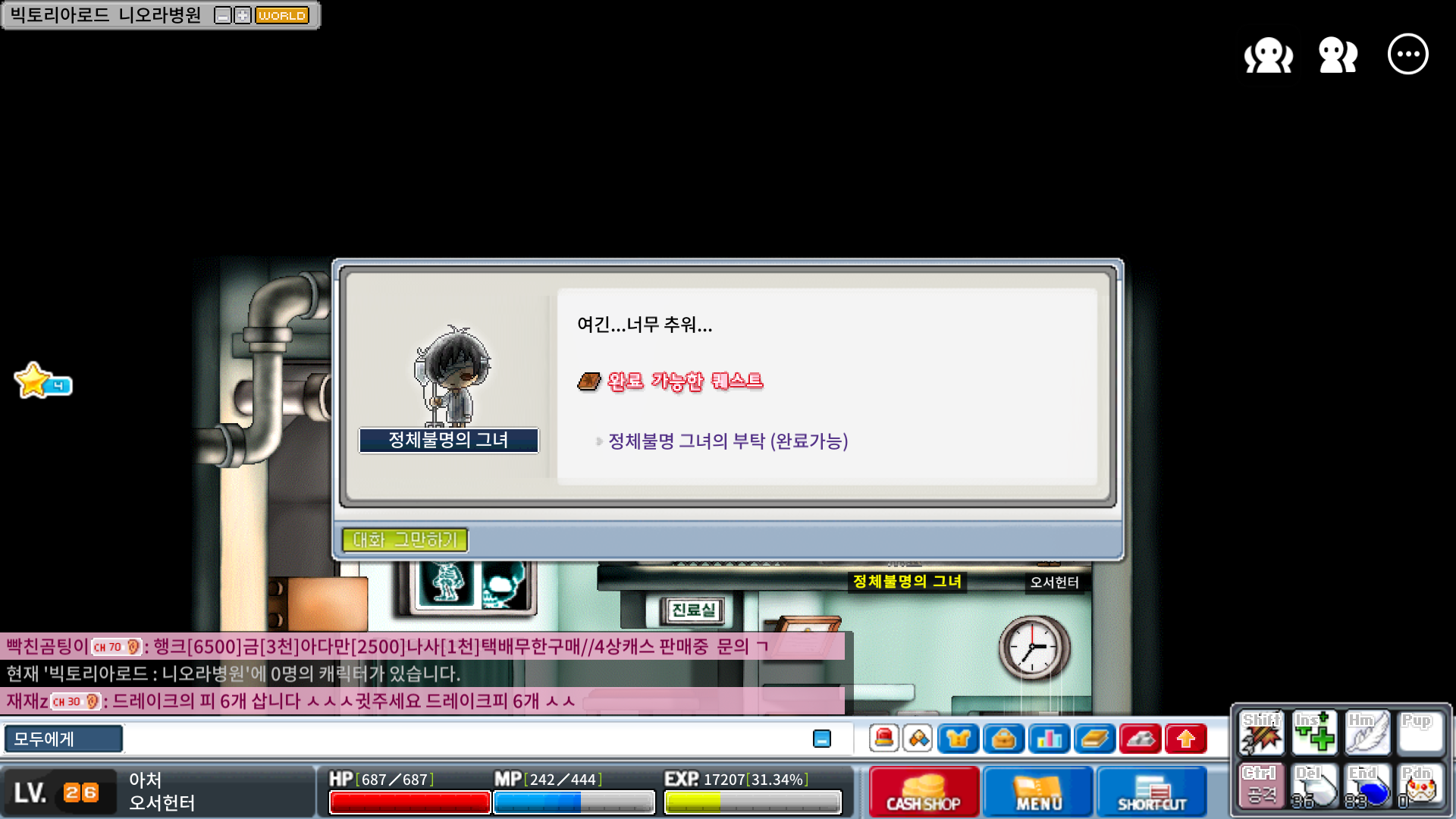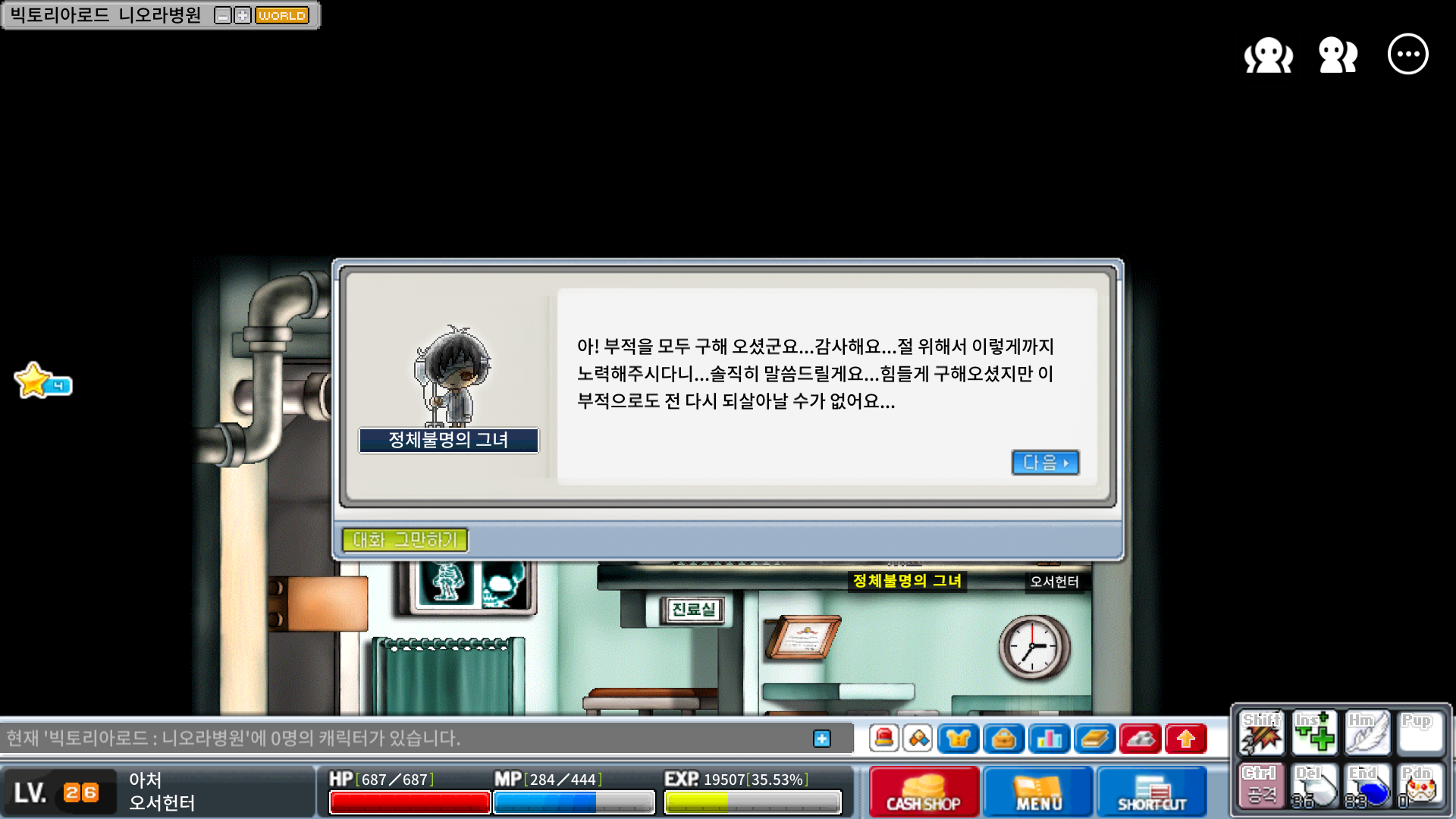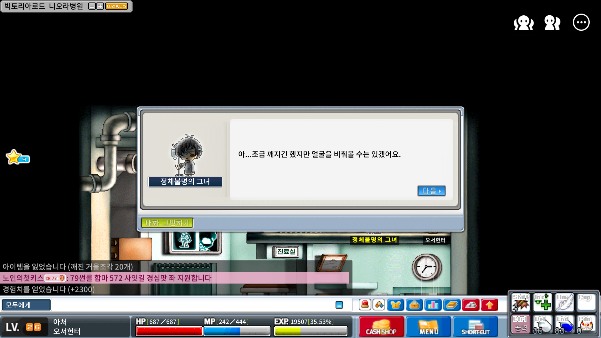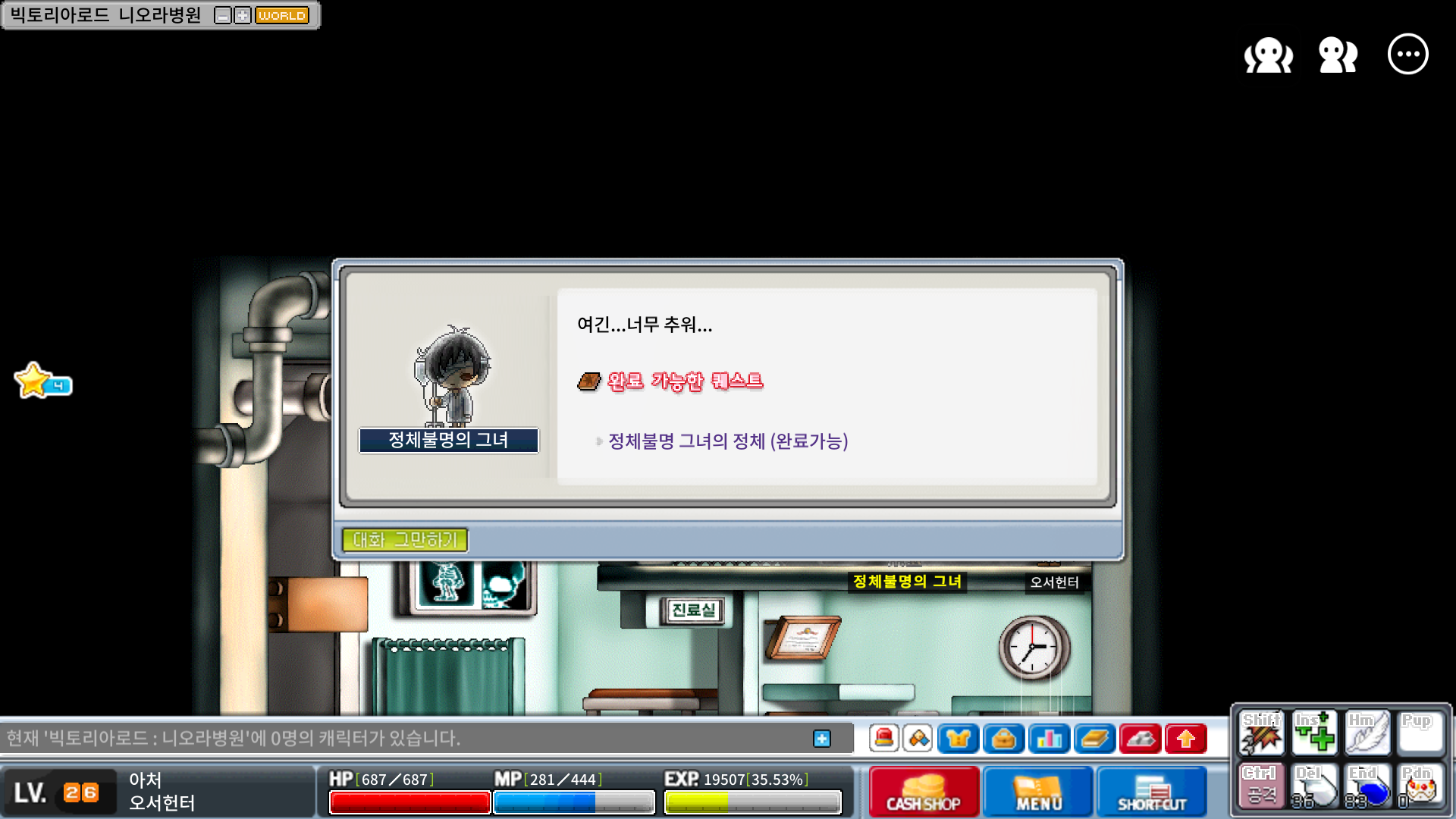 정체불명 그녀는 커닝시티 나오라병원에 들어가면 있어요.