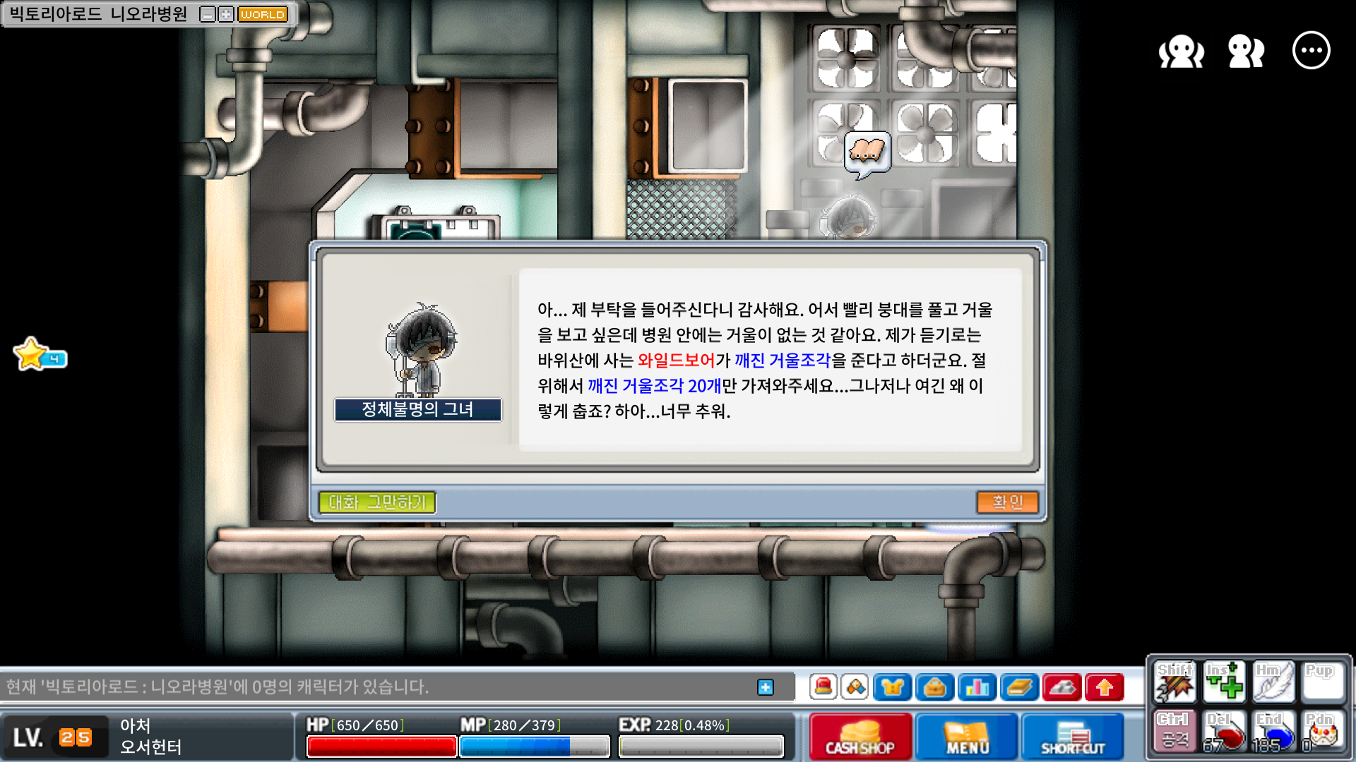 와일드보어를 죽여서 깨진 거울조각 20개를 모아왔어요.ㅎㅎ