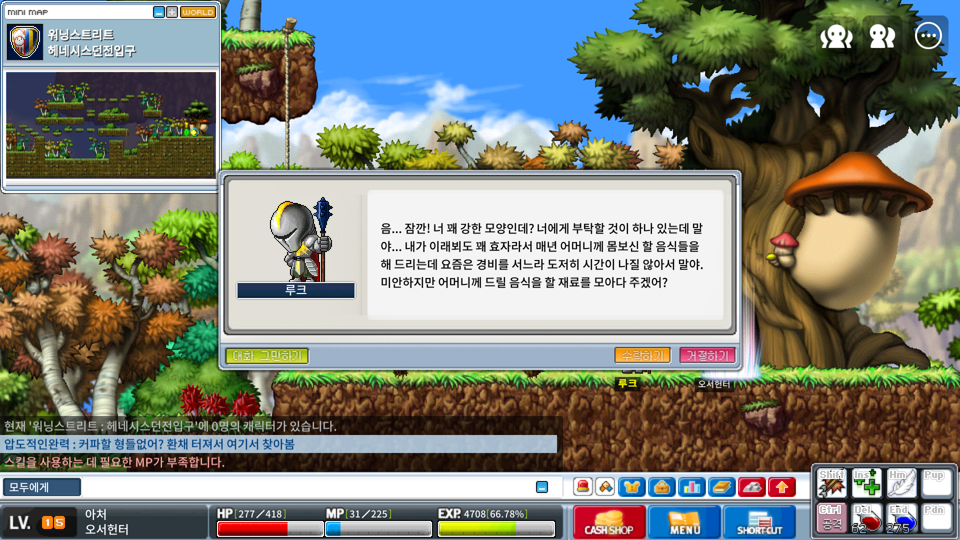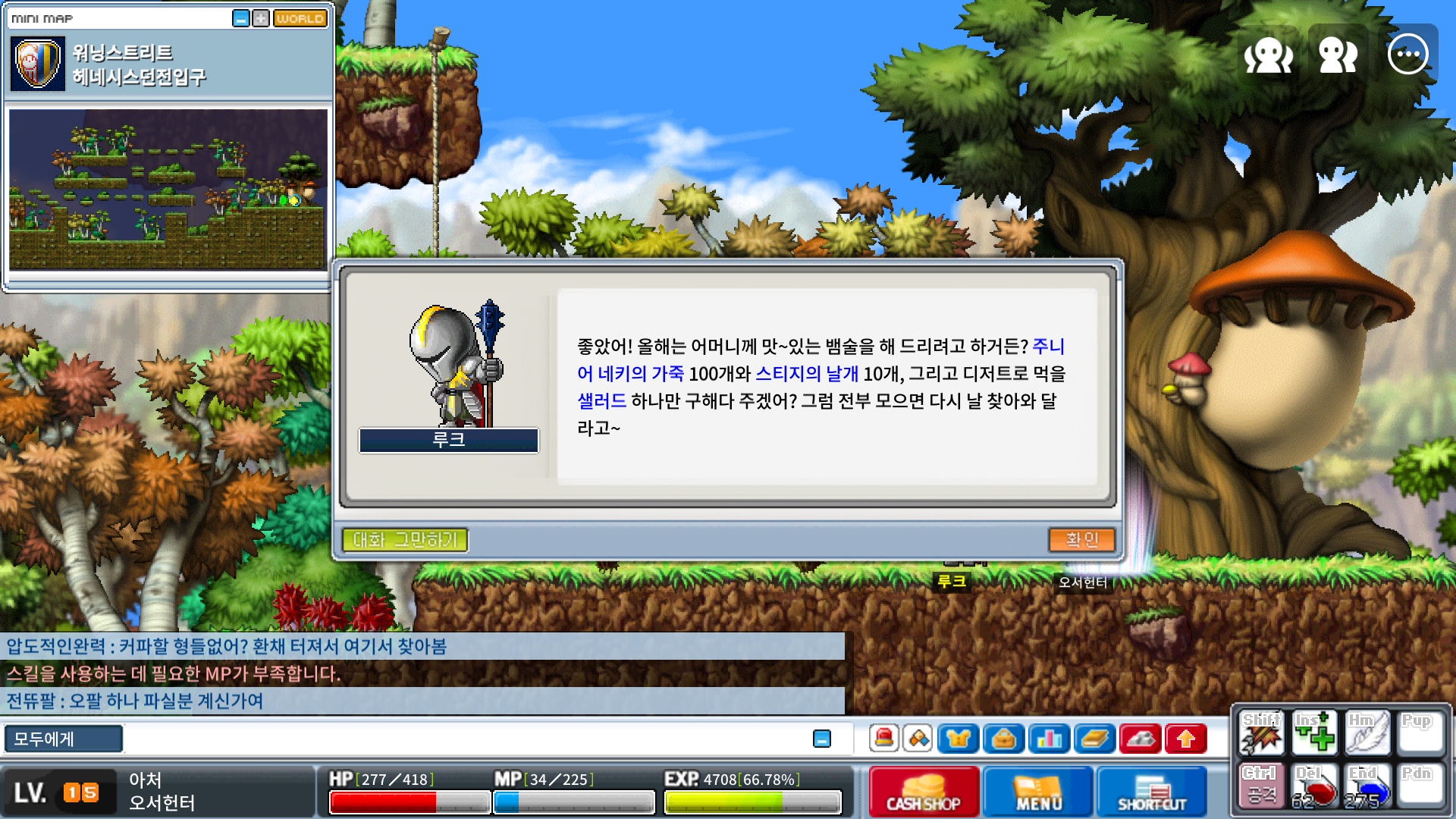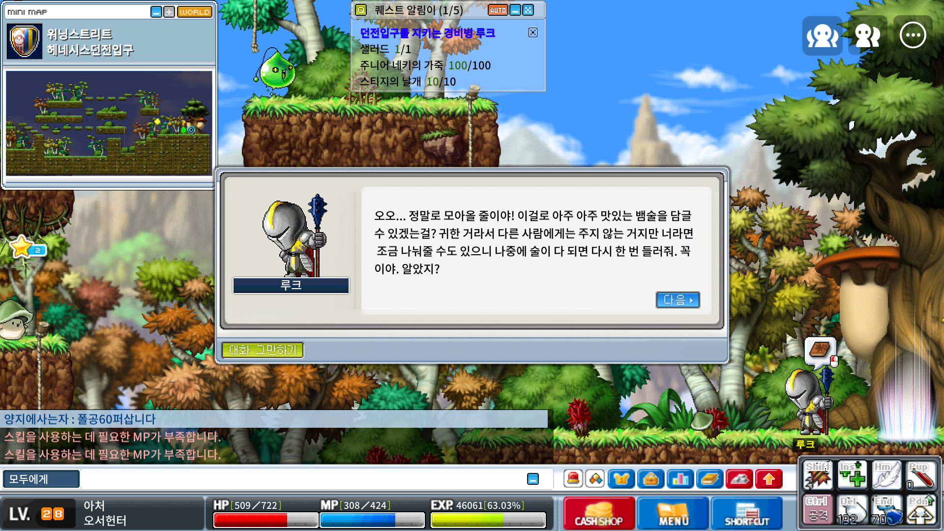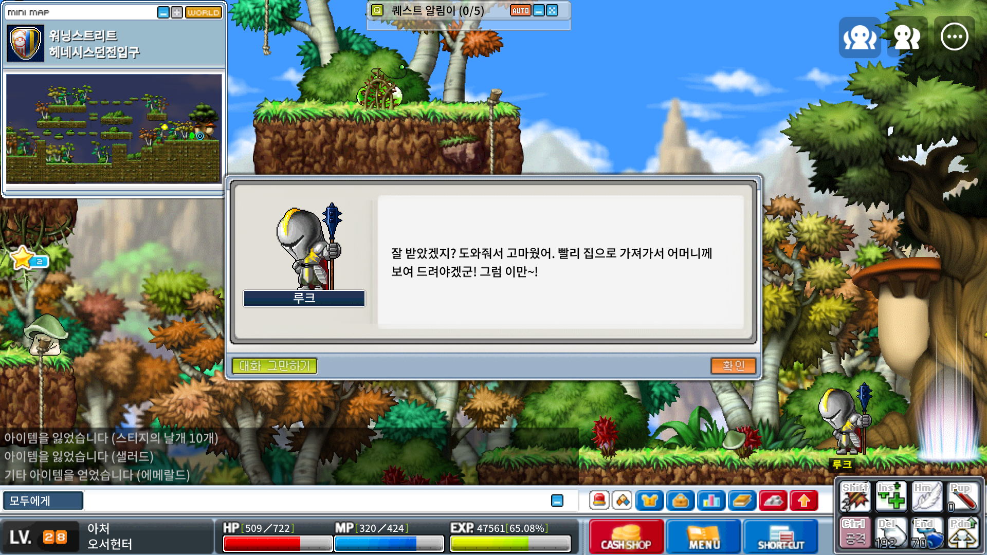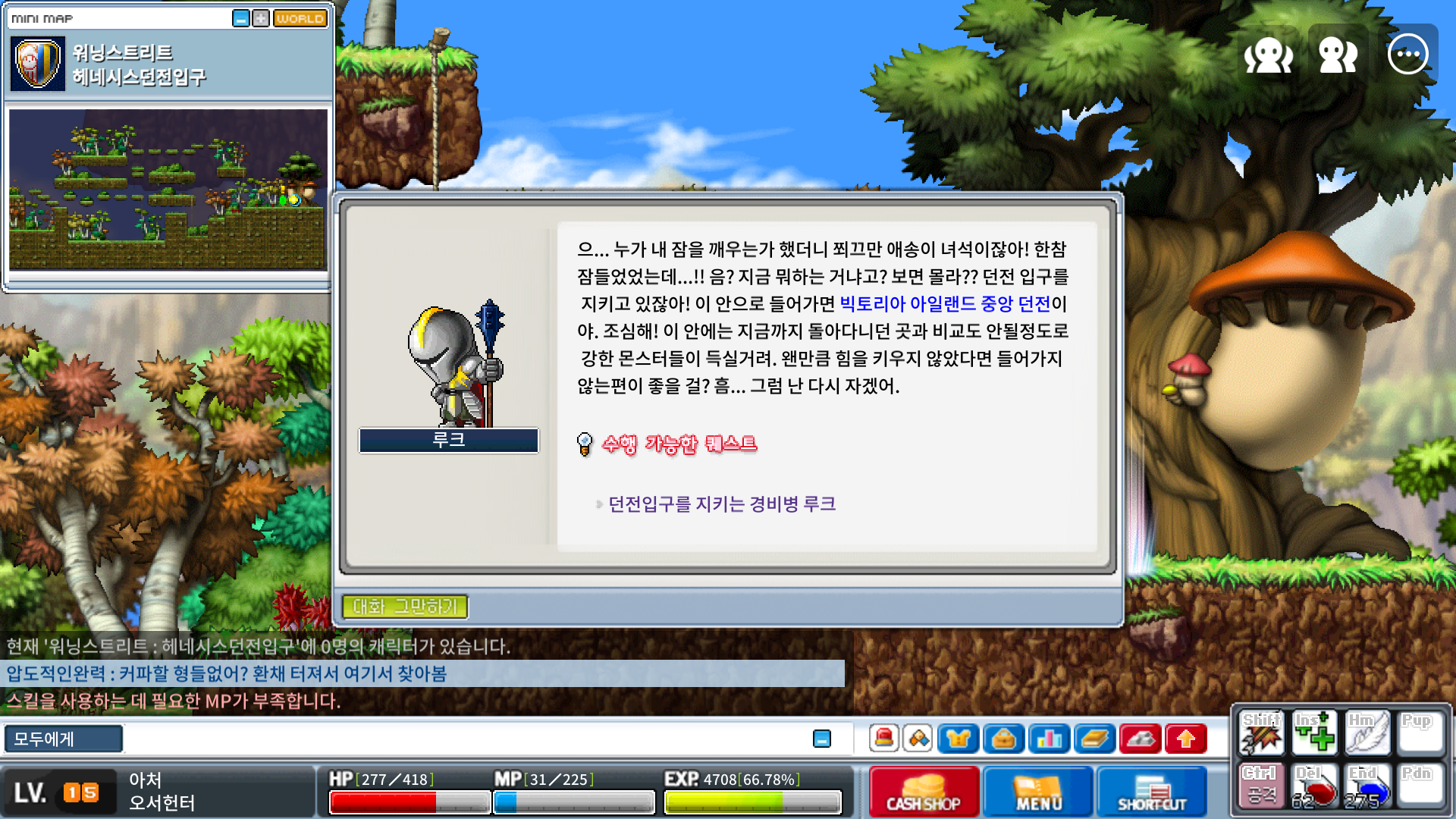퀘스트를 하나씩 포스팅 하면서 느끼는 건데 메이플스토리는 참 퀘스트를 잘 만든 거 같아요.