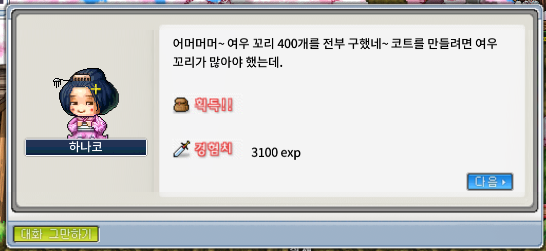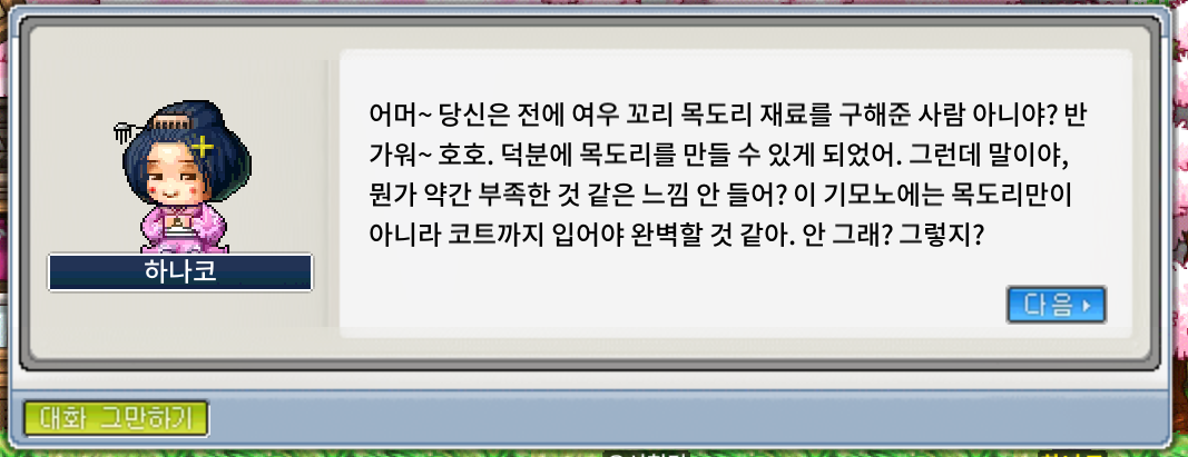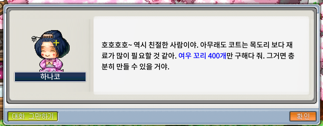 오늘은 하나코의 여우 꼬리 코트를 깨 볼게요.